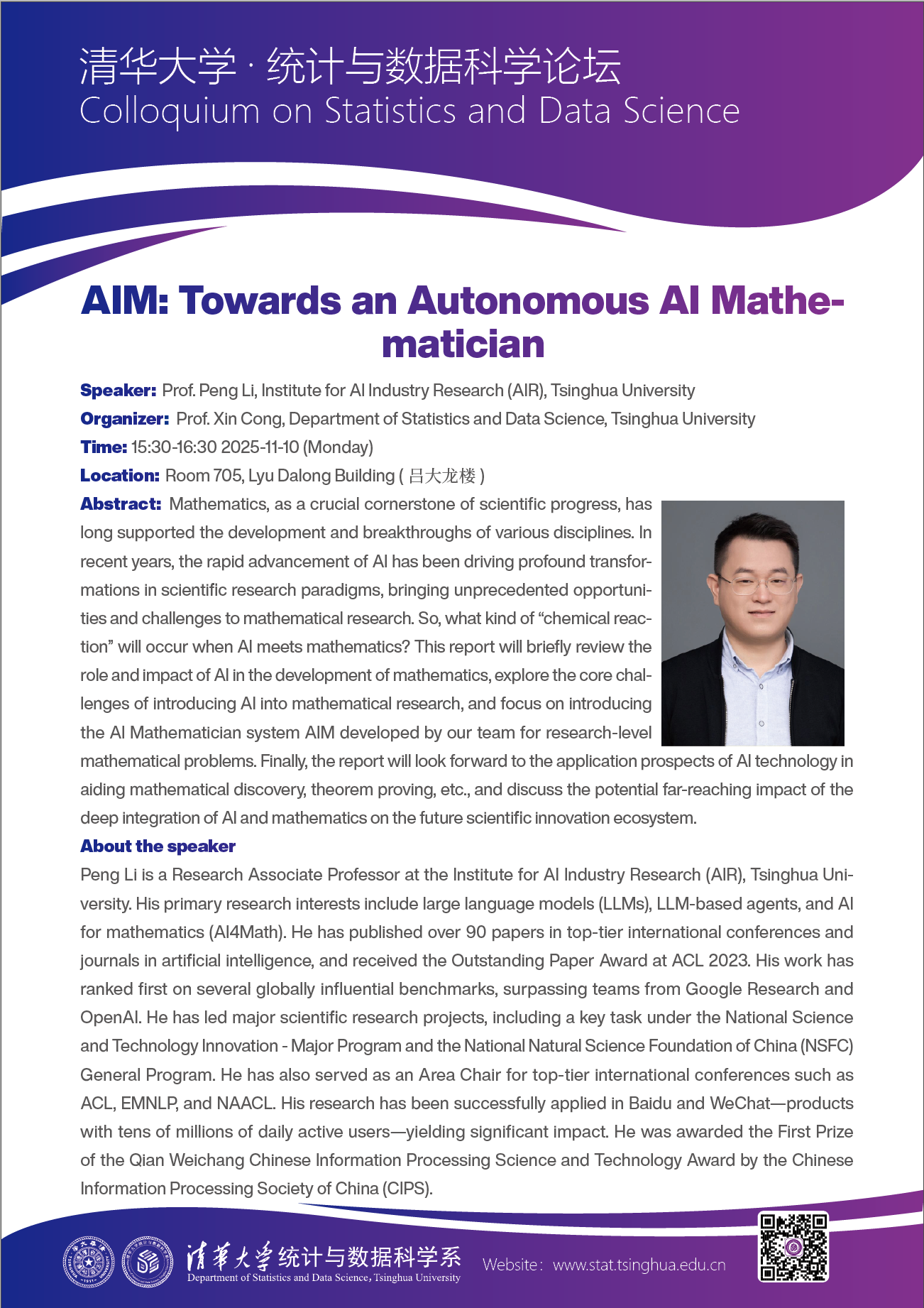 【统计与数据科学论坛】AIM: Towards an Autonomous AI Mathematician