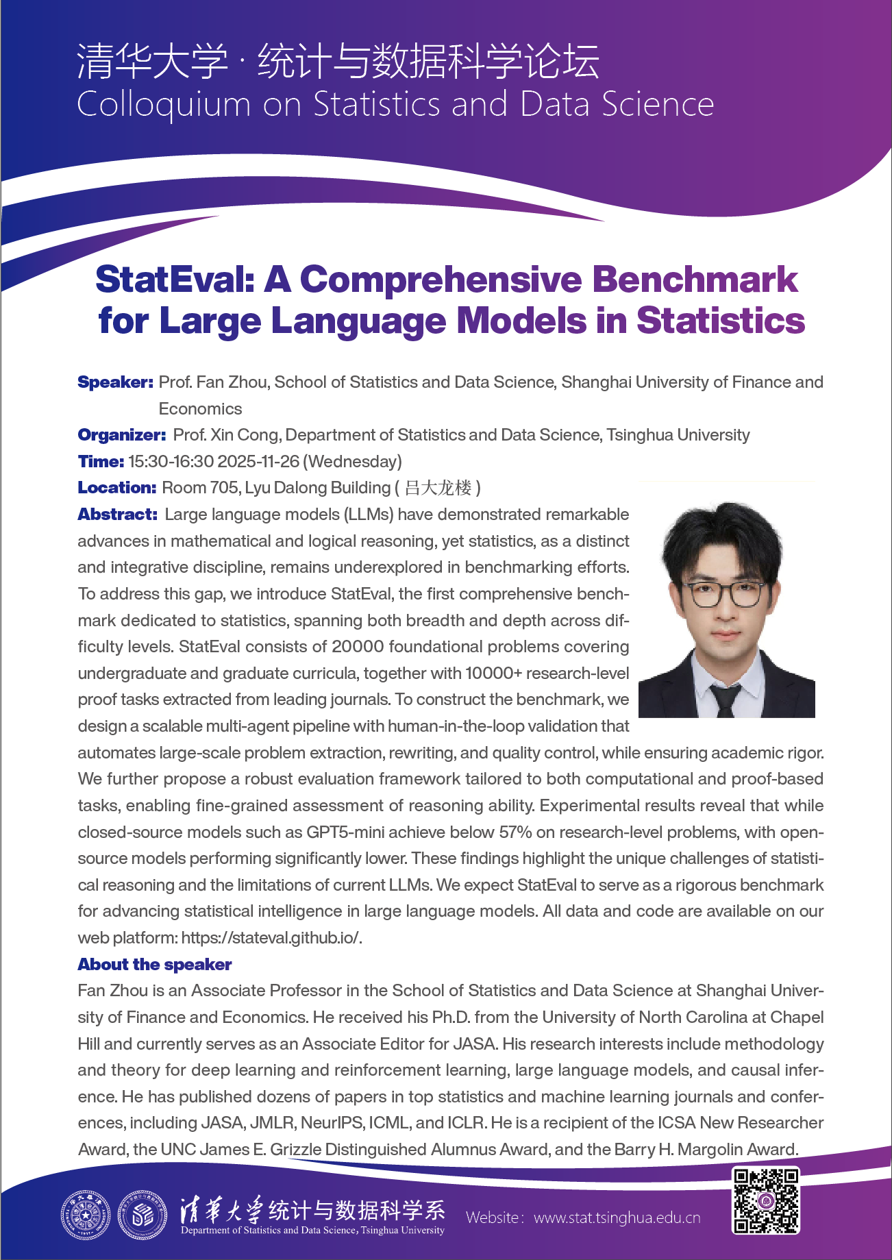 【统计与数据科学论坛】StatEval: A Comprehensive Benchmark for Large Language Models in Statistics