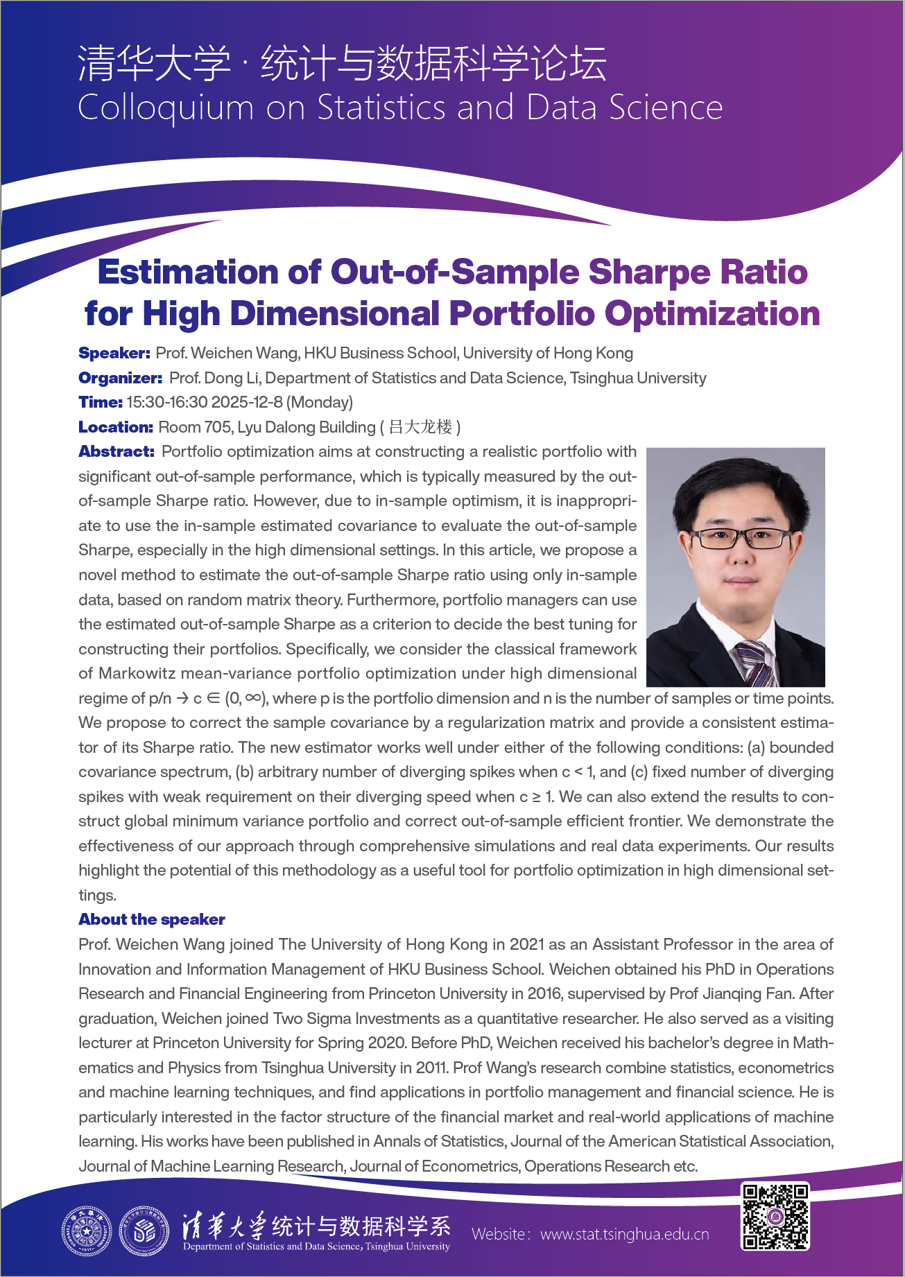 【统计与数据科学论坛】Estimation of Out-of-Sample Sharpe Ratio for High Dimensional Portfolio Optimization