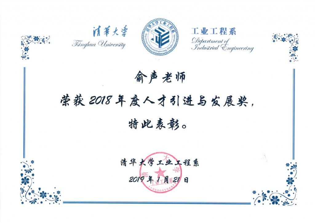 1月21日,“工业工程系年终总结暨表彰大会”在舜德楼顺利召开,大会对2018年度系内各项工作及成果予以总结,并表彰了在各领域表现突出的老师,为他们颁发获奖证书。我中心老师获得“2018年度考核系级优秀奖”、“2018年度科研工作优秀奖”、“2018年度教育教学改革奖”、“2018年度人才引进和发展奖”“2018年度全校选修课建设奖”等多个奖项。