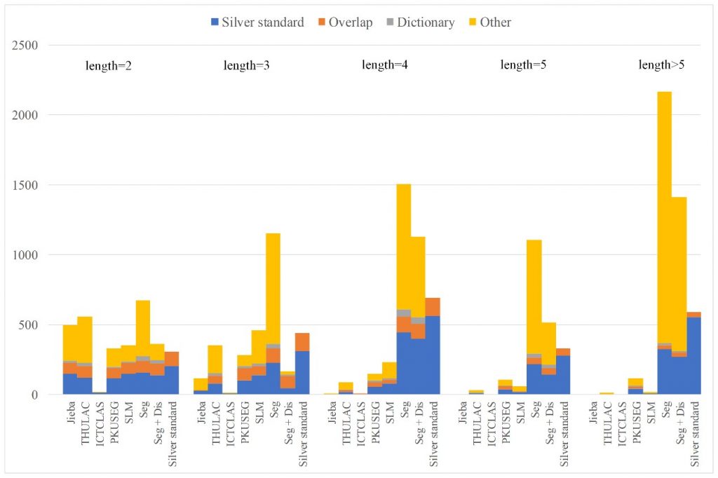 图中Seg和Seg+Dis为论文提出的方法,纵坐标代表测试中术语发现数量。